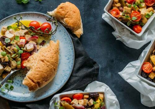 Hier überzeugt statt Feta Naturtofu im Geschmack. Was wunderbar auf dem Grill klappt, funktioniert übrigens auch im Backofen einwandfrei.