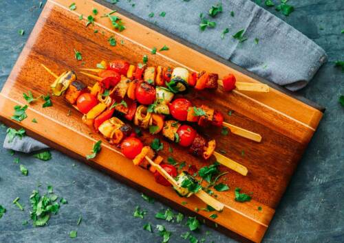 Ob auf dem Grill oder in der Pfanne, diese Spieße mit mariniertem Räuchertofu sorgen für ordentlichen Geschmack.