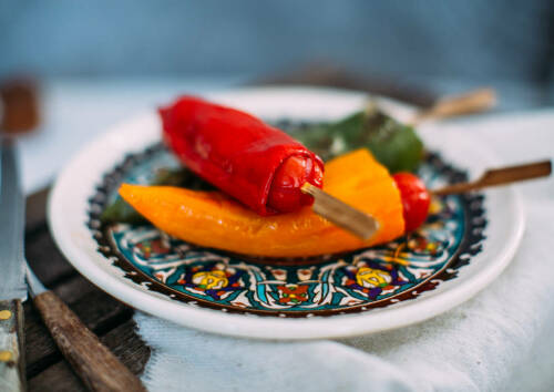 Ein richtiger Hingucker sind unsere gefüllten Paprika mit mariniertem Tofu und schmecken tun sie auch.