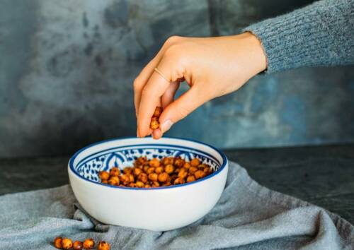 Eine tolle Alternative für alle, die bei Knabbereien an Kartoffelchips denken. Und so geht’s: Kichererbsen waschen und mit Kokosöl einreiben. Ab aufs Backblech damit und mit Kräutern deiner Wahl garnieren – zum Beispiel Basilikum, Thymian und Chili. Das Ganze kommt für etwa eine halbe Stunde bei 150 Grad in den Backofen. Zwischendurch das Wenden nicht vergessen.
