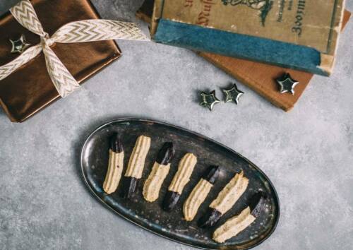 Zugegeben: An diesem Rezept mussten wir ein bisschen tüfteln. Denn ist der Teig zu fest, bringt ihn höchstens Popeye durch den Spritzbeutel – wir leider nicht mehr. Damit du dir nicht die Finger verrenkst, haben wir nicht aufgehört, bevor sich der Teig in der optimalen Konsistenz durch die Spritze drücken lässt. Das Ergebnis findest du im Rezept. Bei der Glasur bist du natürlich wieder flexibel: Wir hätten da eine Variante mit Kokosöl und Kakao im Angebot.