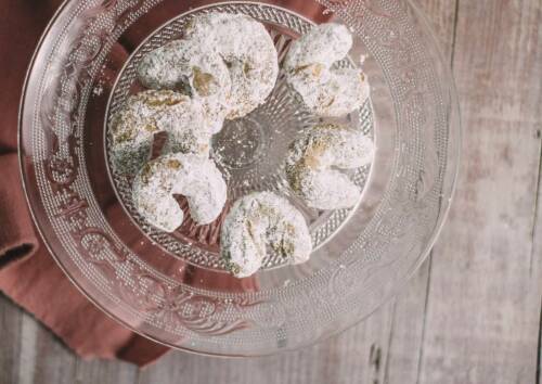 Weihnachten ohne Vanillekipferl? Ohne uns! Wie gut, dass die auch mit pflanzlicher Margarine gelingen! Ein bisschen Fingerfertigkeit sollte man mitbringen, um den Halbmond sauber zu formen. Aber so gut wie die schmecken, sind wir in Sachen Aussehen nicht so kritisch – halb so schlimm, wenn das ein oder andere Exemplar eher einem Mini-Croissant gleicht. Und pssst – unter uns: Der Puderzucker am Schluss kaschiert kleinere Ungenauigkeiten. Nach Lust und Laune kannst du die Enden zum Abschluss sogar noch in geschmolzene Schokolade tauchen. Dann bleibt wirklich kein Naschwunsch mehr offen!