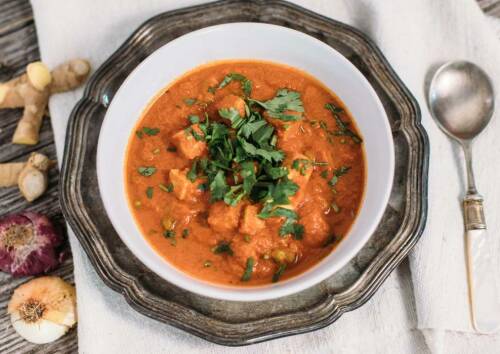 Wie wäre es zur Mitte der Woche mit einem Abstecher nach Indien? Tofu Masala ist die vegane Variante des Klassikers Chicken Tikka Masala und versetzt dich sofort in den Urlaub. Die süß-scharfe Kombination harmoniert perfekt und lässt dich nicht eine Sekunde an Fleisch denken. Hmmm, lecker.