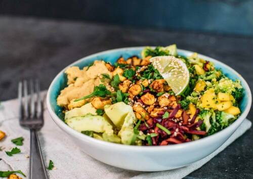 Bowls sind etwas Tolles, denn sie vereinen die leckersten Zutaten in nur einer Schüssel. Mit dieser fruchtig-frischen Rainbow Bowl holst du dir nicht nur eine Extraportion gute Laune auf deinen Teller, sondern auch ziemlich viele Vitamine! Brokkoli, Mango und Rotkohl sorgen für tolle Farben und die Cashews sind super knusprig – außerdem gibt es Couscous, der dich schön satt macht.