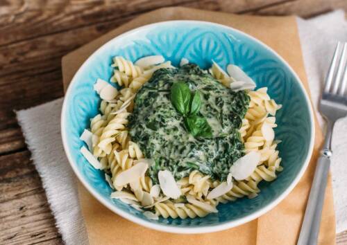 Freitag: Pasta mit veganer Spinatsoße