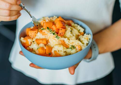 Risotto gehört zu den Klassikern der italienischen Küche. Doch wusstest du, dass du es nicht nur mit Pilzen oder Kürbis zubereiten kannst, sondern auch mit Süßkartoffeln und Bohnenkraut? Dazu sorgen Weißwein, Olivenöl und Knoblauch trotzdem für den bekannten Risotto-Geschmack und die neuen Zutaten bringen etwas Abwechslung in deine Küche.