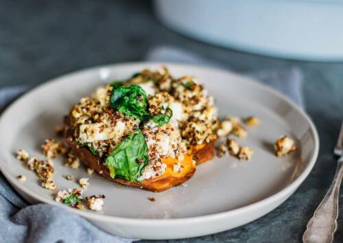 Ofen-Süßkartoffel mit Quinoa und Spinat