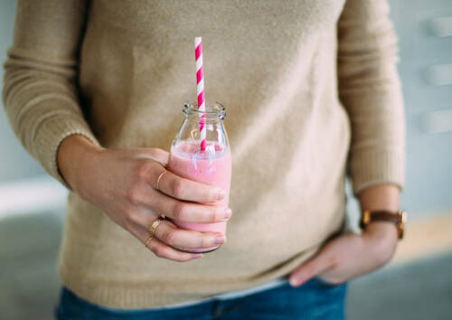 Quinoa-Erdbeer-Smoothie mit Joghurt als fruchtiger Vitamin-Cocktail für zwischendurch.