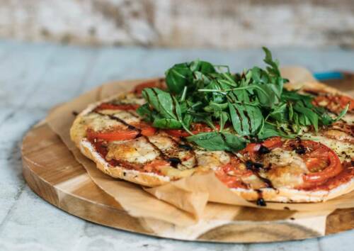 Abendessen: Schnelle Fladenbrot-Pizza Caprese ist wie gemacht für einen Feierabend mit Genussfaktor. Während Tomaten, Knoblauch, Olivenöl und italienische Kräuter für Genuss à la Bella Italia sorgen, darfst du dich auf ein proteinreiches Topping aus gratiniertem Mozzarella freuen.