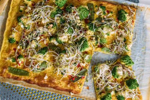 Der knusprig-deftige Klassiker wird hier neu interpretiert. Der Boden bleibt der Gleiche, doch beim Belag fließen in diesem Rezept asiatische Zutaten wie Erdnussbutter, Sprossen und Chili mit in die Rezeptur. Alle, die es abwechslungsreich mögen, sollten diese Variante unbedingt ausprobieren.