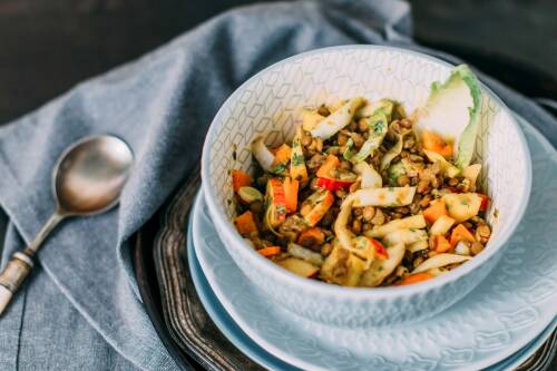 Es muss nicht immer Nudelsalat sein! Hülsenfrüchte wie Linsen gehören zu den eisenreichen Lebensmitteln und geben dir zusätzlich einen Proteinboost. Diese Köstlichkeit mit Chicorée, Lauch und Karotten wird mit fruchtigen Äpfeln, Estragon, Zitrone und Dijon-Senf aromatisch verfeinert.