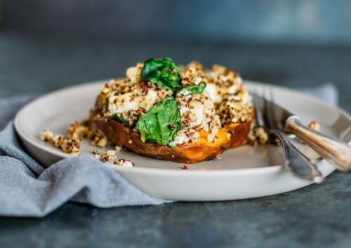 Montag: Ofen-Süßkartoffel mit Quinoa und Spinat