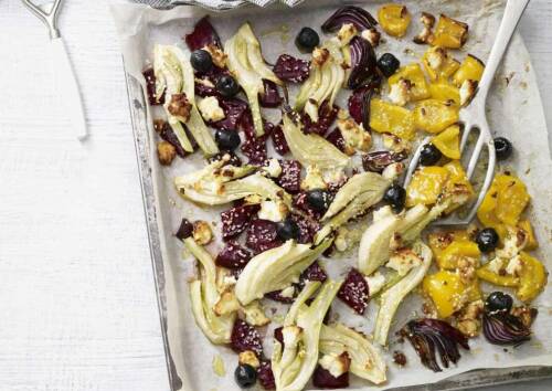 Wenn du bei Ofengemüse an Zucchini, Aubergine, Tomate und Paprika denkst, dann wird dich dieses Rezept überraschen. Denn hier bilden die Grundlage Fenchel und Rote Bete und werden durch Oliven und gelbe Parika ergänzt. Zusammen mit italienischen Kräutern, Sesamsamen und einem Feta-Topping ergibt sich ein Genuss, der ganz sicher von innen wärmt.