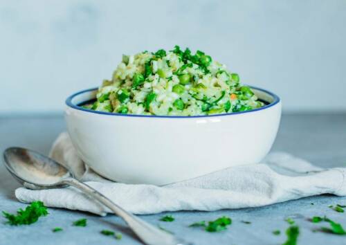 Risotto ist das ideale Gericht für die ganze Familie, denn Kinder lieben Reis und Erbsen. Dies kombinierst du einfach mit würzigem Käse und frischer Petersilie zu einem echten Highlight! Es ist in 35 Minuten zubereitet und schmeckt sowohl Groß als auch Klein.