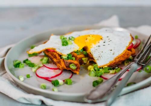 Wir sind im Waffel-Fieber. Die Süßkartoffel-Waffel schmeckt einfach unglaublich gut und lässt sich großartig kombinieren. Diese hier kommt mit Radieschen und Spiegelei auf den Teller, für Frische sorgen Frühlingszwiebeln oder Schnittlauch. Das beste an diesem Gericht: Du kannst es sowohl morgens, mittags als auch abends servieren.
