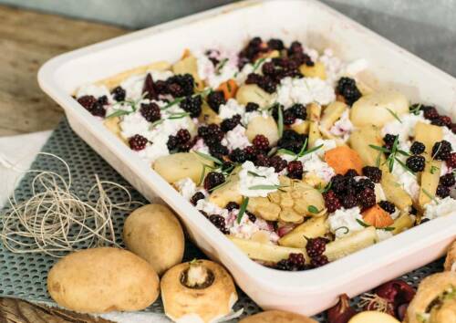 Mein optischer Liebling diese Woche: Pastinakenofengemüse. Nicht jeder mag Pastinaken, aber dieses Rezept solltest du unbedingt probieren. Frische Beeren sorgen für eine fruchtige Süße und cremiger Käse, Rosmarin und Thymian verleihen mediterrane Aromen, die du dir nicht entgehen lassen solltest.