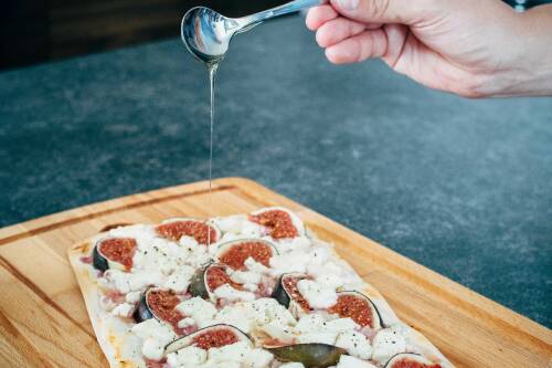 Flammkuchen kennen wir alle. Zwiebeln, Speck, Sauerrahm. Fertig ist der Klassiker. Doch der Boden des Flammkuchens schmeckt neutral und du kannst bei den Toppings deiner Kreativität freien Lauf lassen und etwas ausprobieren. Wie wäre es denn mit Feigen auf dem Flammkuchen? Und was passt gut dazu? Vielleicht Schafskäse? Die Süße der Feigen ergänzt sich prima mit der würzig-deftigen Note des Fetas. Das solltest du dir nicht entgehen lassen.