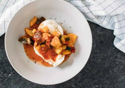 Ein leichtes Gericht mit viel frischem Gemüse ist dieser Mozzarella mit mediterranem Gemüse. Italienisches Flair verbreiten Olivenöl, Tomaten und verschiedene Kräuter. Perfekt für den kleinen Hunger an heißen Tagen, oder aber als wärmendes Abendessen mit etwas knusprigem Baguette dazu.