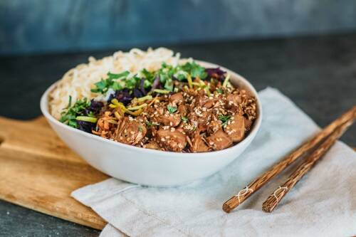 Teriyaki ist ein Klassiker der japanischen Küche. Mit nur wenigen Zutaten lässt sich die leckere Soße, welche du vielleicht vom Japaner kennst, ganz einfach und schnell zubereiten. In dieser Bowl werden Jackfruit, Rotkohl und Mie-Nudeln zum Star und verführen dich mit asiatischen Gaumenfreuden.