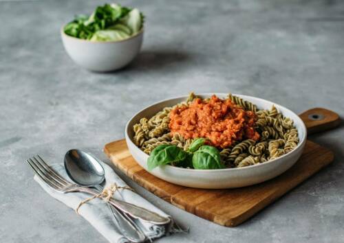 In geschroteter Form überzeugt Vollkorn darüber hinaus als Pasta mit Grünkern-Bolognese, wobei die Spirelli ebenfalls in der Vollkorn-Variante daher kommen.