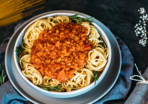 Kann man besser in die Woche starten, als mit Pasta? Ich denke nicht. Diese Linsenbolognese steht in nur einer halben Stunde auf dem Tisch und wird auch den Kleinen schmecken. Denn das Gemüse "versteckt" sich à la Bolognese in der Tomatensoße. Wenn du dich vegetarisch ernährst, kannst du gerne Parmesan dazu reichen.