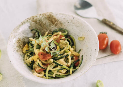 Dienstag: Zucchini-Nudeln mit Gemüse und Schmand