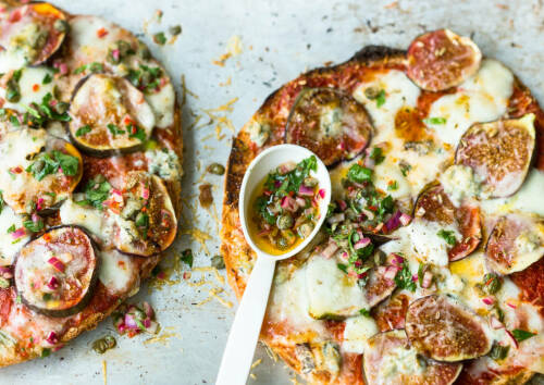 Die Pizza gelingt dank fertiger Fladenbrothälfte im Handumdrehen und ist prall belegt mit Tomaten und frischen Feigen. Für den Genuss sorgen Parmesan, Mozzarella und Gorgonzola. Dazu gibt es eine nährstoffreiche Salsa aus frischem Koriander, roter Zwiebel, Zitrone und Chilischote mit einer Extraportion Antioxidantien.