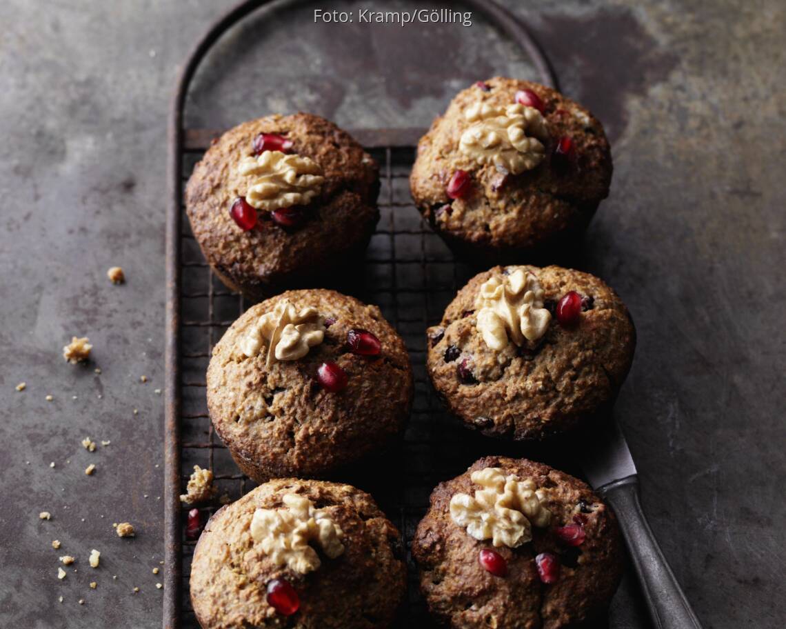 Foto: Kramp/GöllingApfel-Muffins mit Walnüssen und Granatapfel