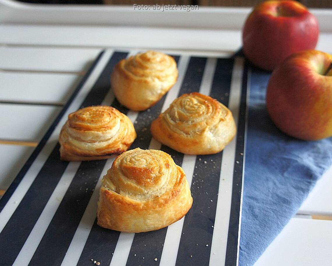 Blätterteig ausrollen und dünn mit Apfelmus bestreichen.