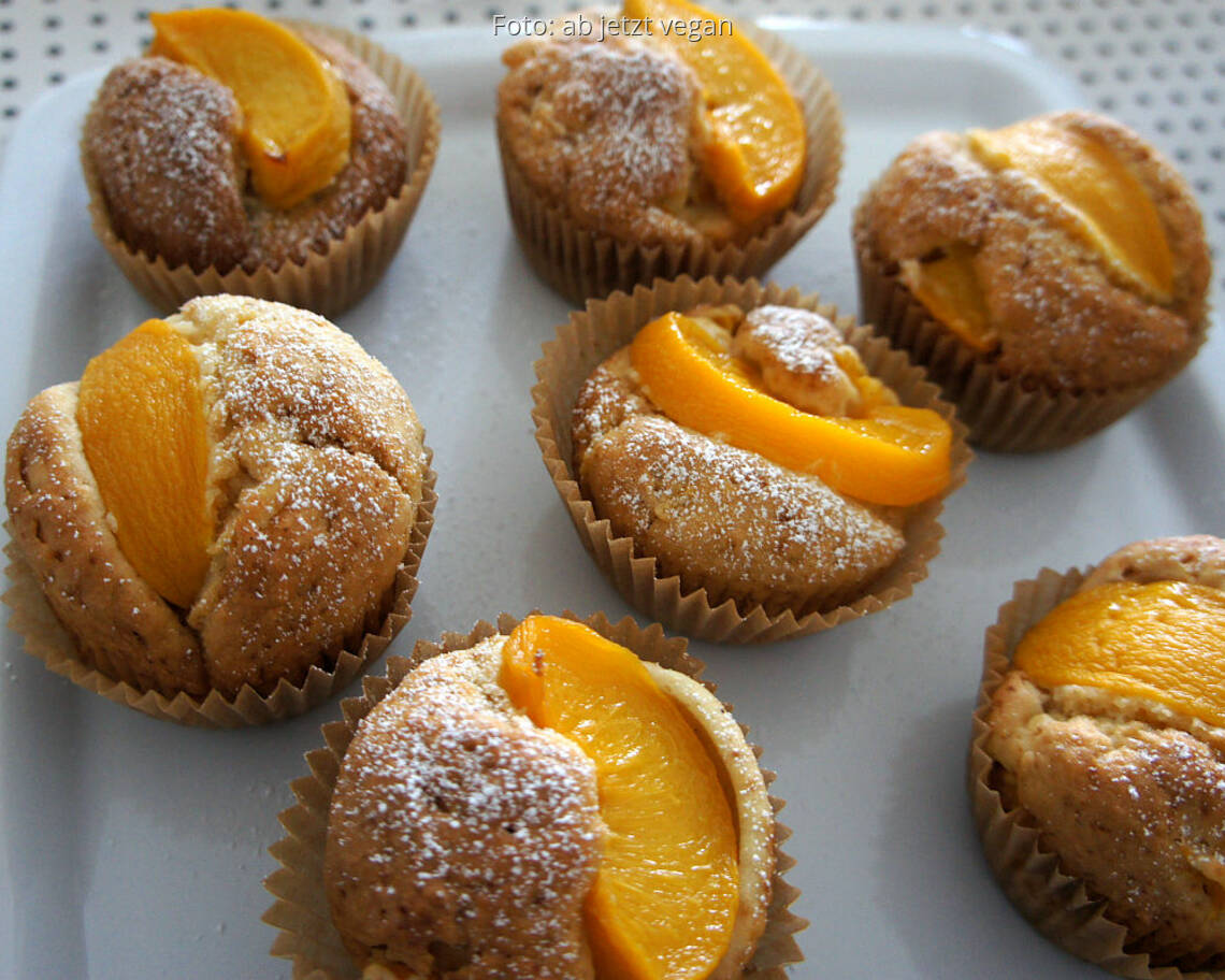 Den Teig in Muffinförmchen füllen und jeweils eine Aprikosenhälfte darauf geben und etwas eindrücken.