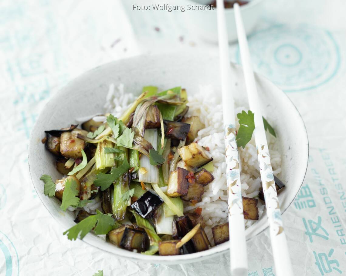Foto: Wolfgang SchardtAuberginen mit Lauch und Sesamöl