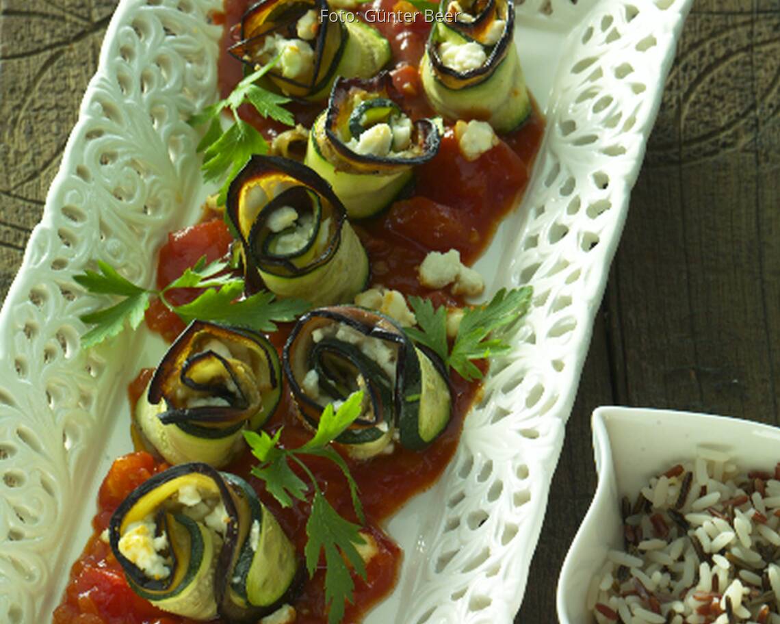 Foto: Günter BeerAuberginen-Zucchini-Röllchen mit Feta