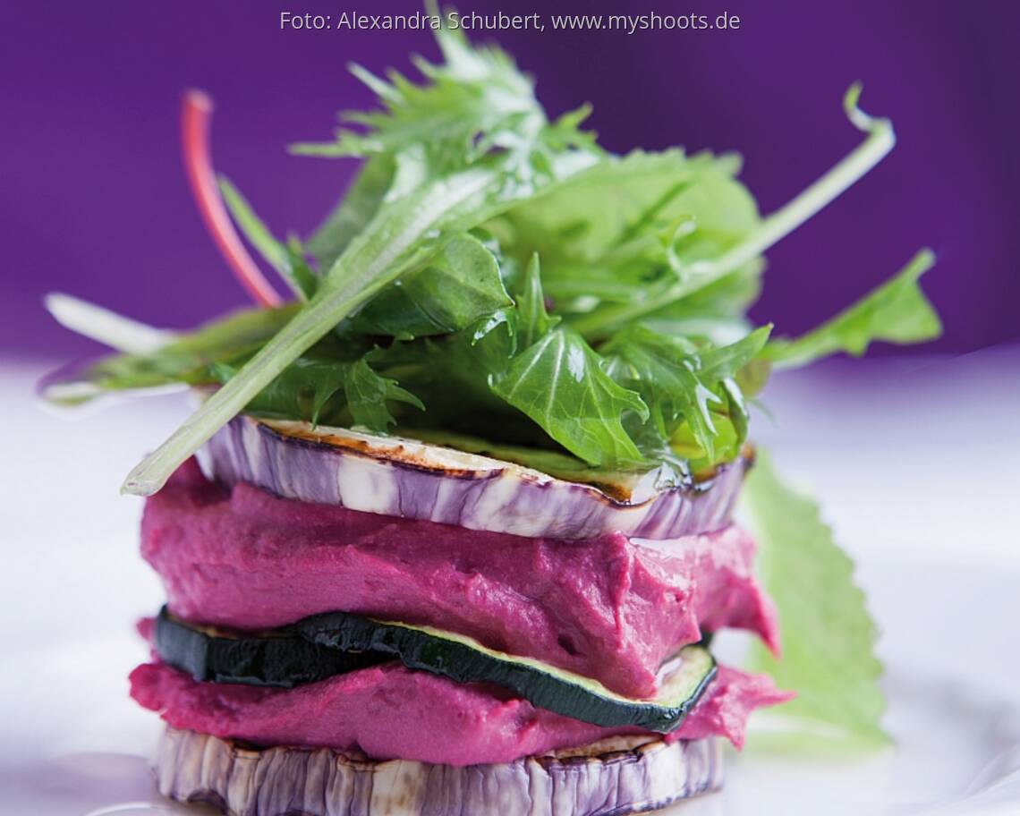 Foto: Alexandra Schubert, www.myshoots.deAuberginenlasagne mit Rote-Bete-Hummus