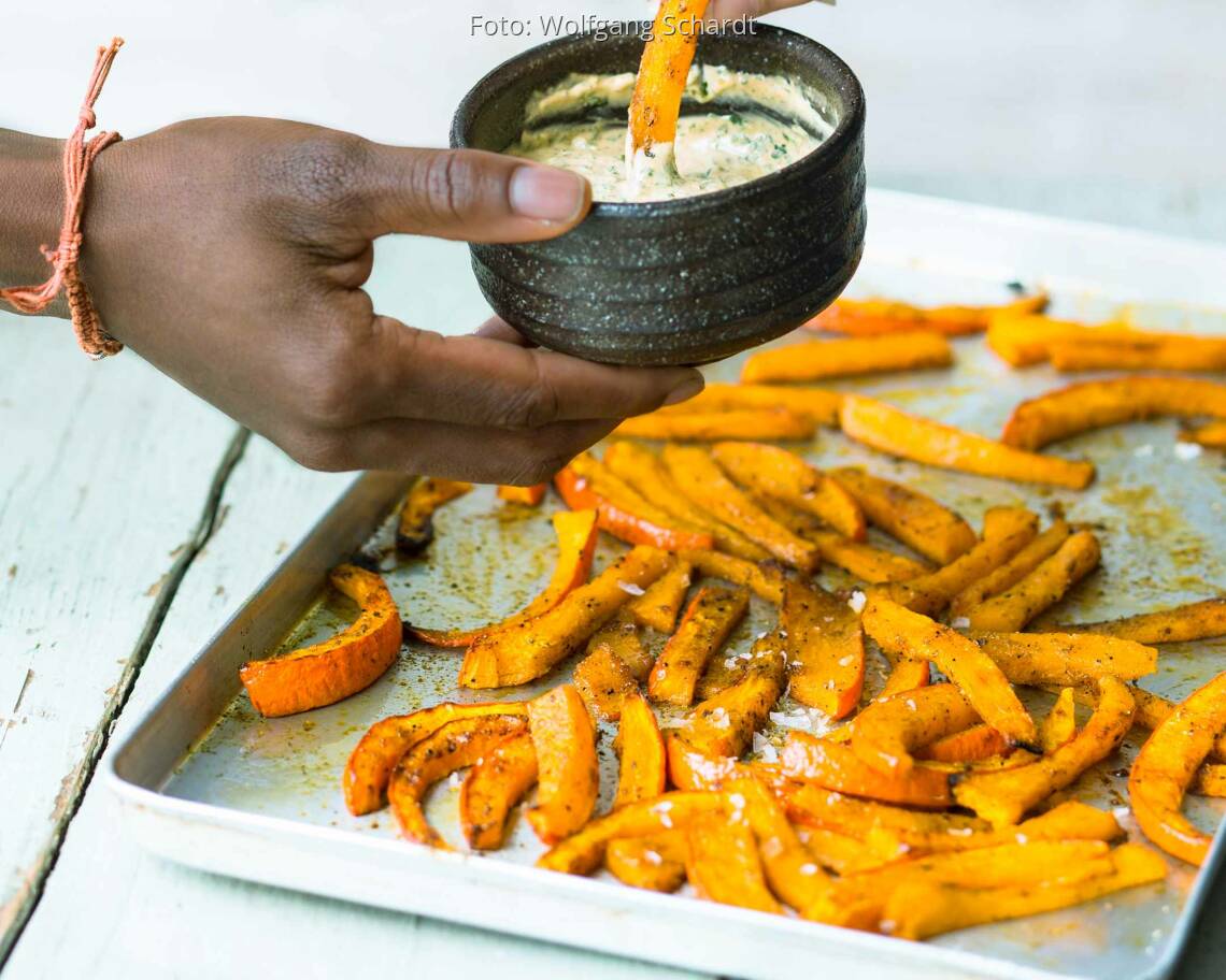 Foto: Wolfgang SchardtBackofen-Kürbisfritten mit Chermoula-Mayo