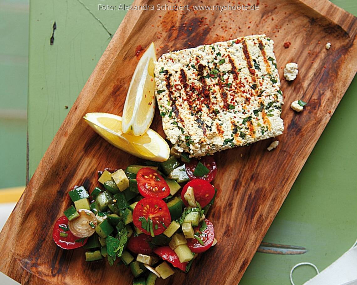 Foto: Alexandra Schubert, www.myshoots.deBärlauchgrillkäse mit Gurken-Tomaten-Salat
