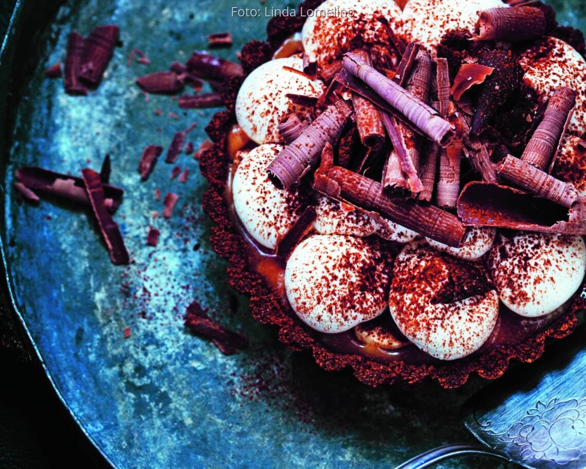 KEKSBODEN 1. Die Butter schmelzen. 2. Die Kekse im Blitzhacker zu feinen Bröseln mahlen und mit dem Kakaopulver und der geschmolzenen Butter mischen. 3. Mit der Bröselmasse zwei Tarteformen von je 14 cm Durchmesser mit Hebeboden auskleiden. Mindestens 20 Minuten kühl stellen.
