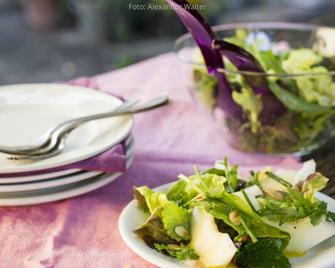Foto: Alexander WalterBlattsalat mit Melone und Kräutern