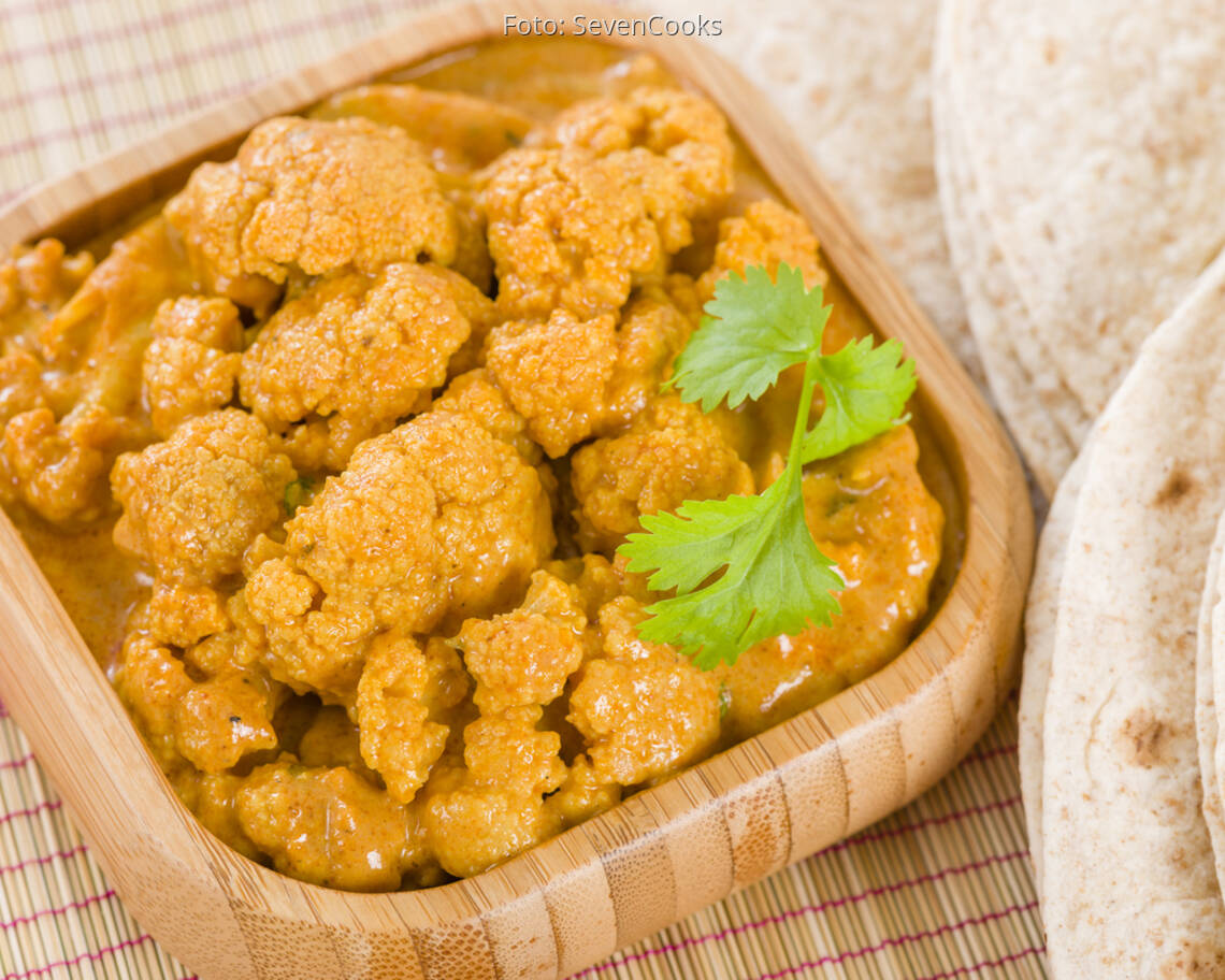 Foto: iStock.com/Paul_BrightonBombaykartoffeln mit Blumenkohl – vegan