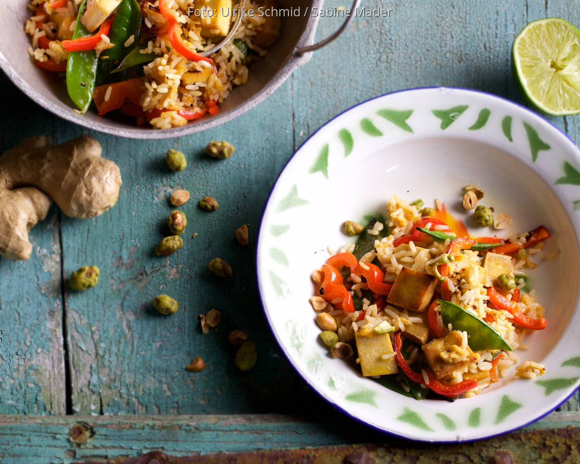 Foto: Ulrike Schmid / Sabine MaderBratreis mit Gemüse und Wasabinüssen