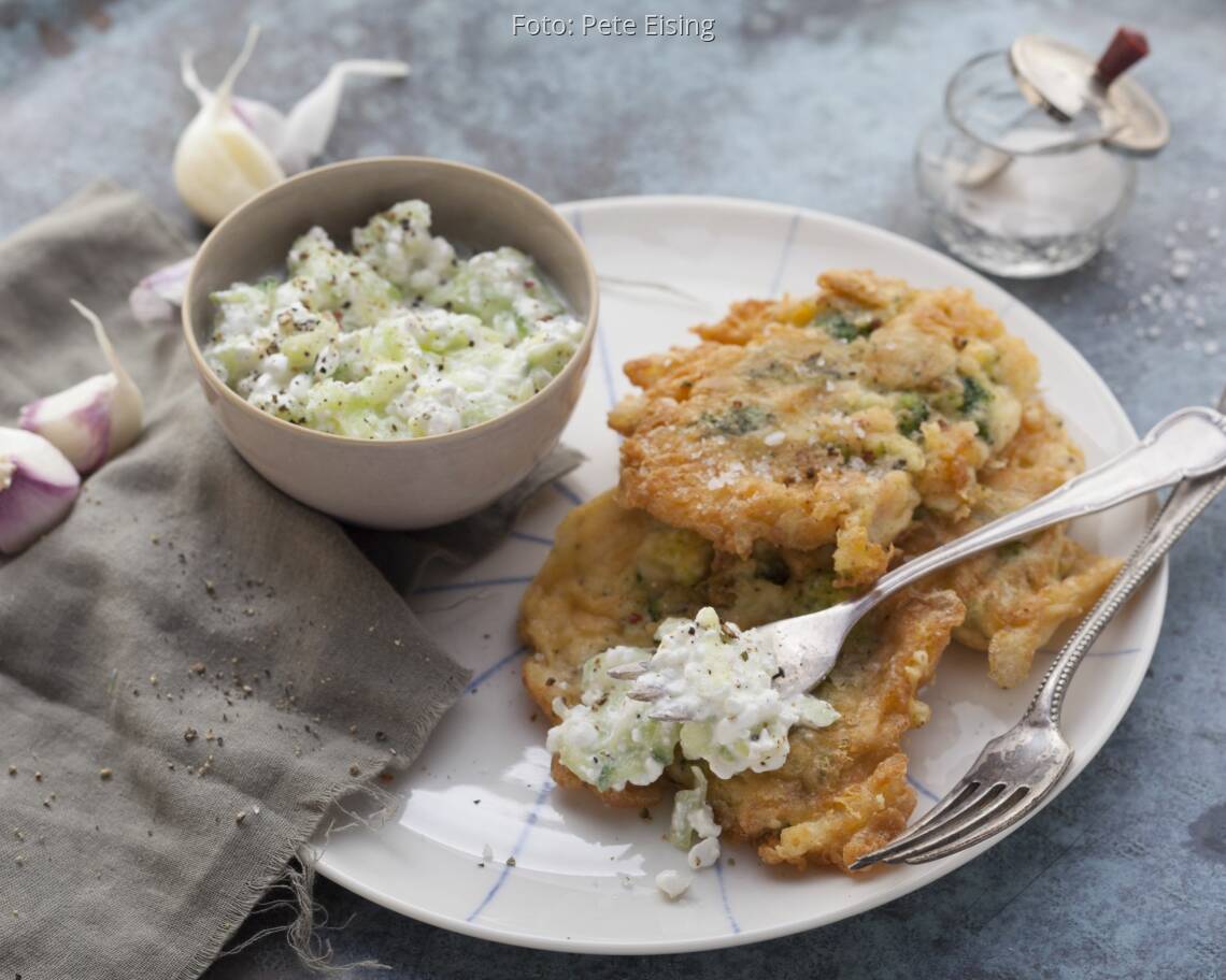 Foto: Pete EisingBrokkoli-Fritters mit Zaziki
