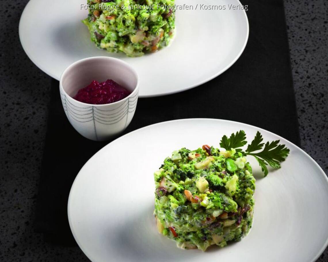 Foto: Rogge & Jankovic Fotografen / Kosmos VerlagBrokkolitatar mit Ziegenkäse und Rote-Bete-Sauce