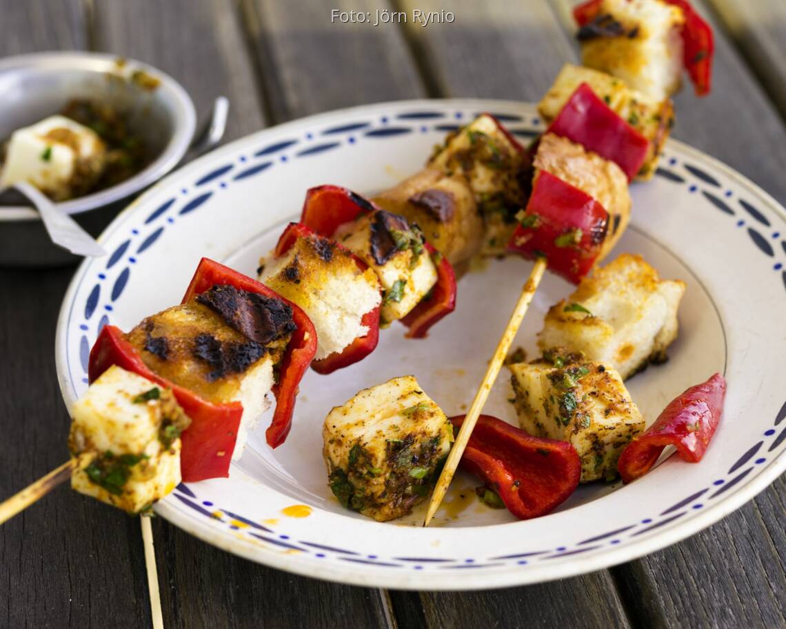 Foto: Jörn RynioBrotspieße mit Halloumi und Senf-Öl
