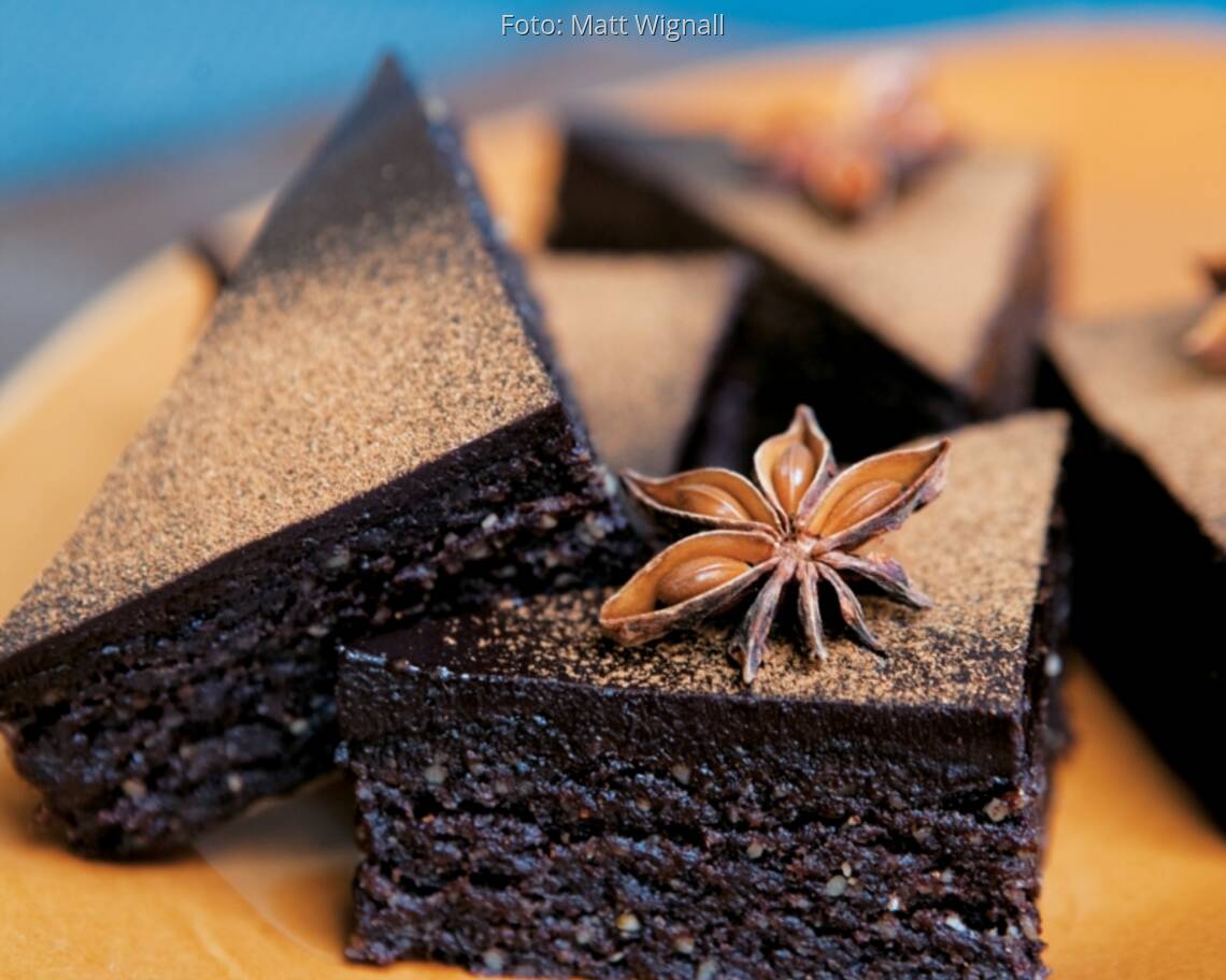 veganes Rezept von Judita WignallIch liebe Schokolade mit Gewürzen, daher haben meine Brownies das gewisse Etwas. Sind Sie kein Fan von scharfen Gerichten, dann nehmen Sie nur halb so viel Cayennepfeffer. Wenn Sie für Kinder „backen“, lassen Sie ihn am besten ganz weg.