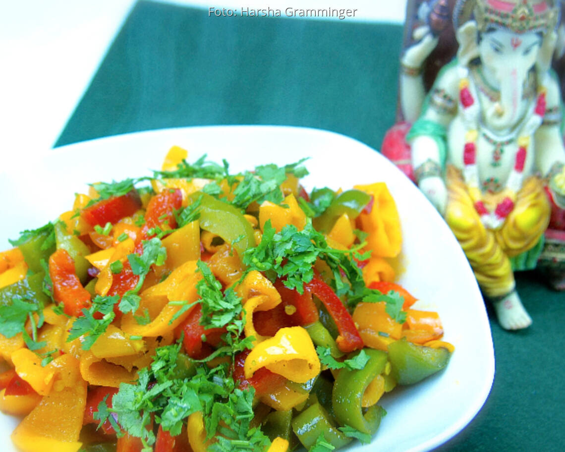 veganes Rezept von Harsha Grammingerveganes Buntes Paprikagemüse wirkt Vata beruhigend ↓ – Pitta erhöhend ↑ – Kapha stimulierend ↓