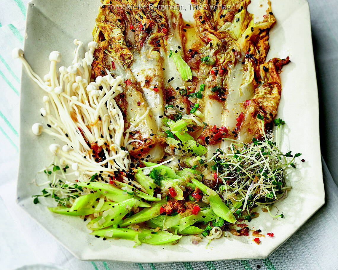 Foto: Meike Bergmann, TRIAS VerlagChinakohl herb asiatisch mit Staudensellerie und Enokipilzen