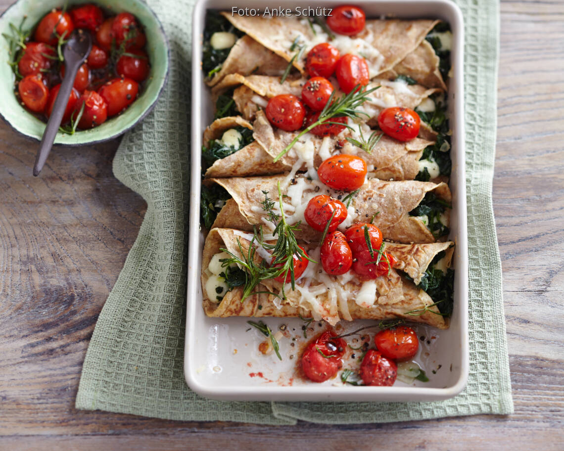 Foto: Anke SchützCrespelle mit Spinatfüllung und Tomaten