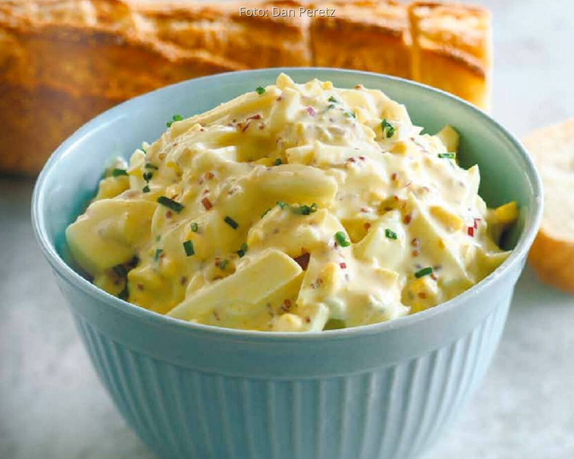 Foto: Dan PeretzEiersalat mit zweierlei Senf und zweierlei Zwiebeln