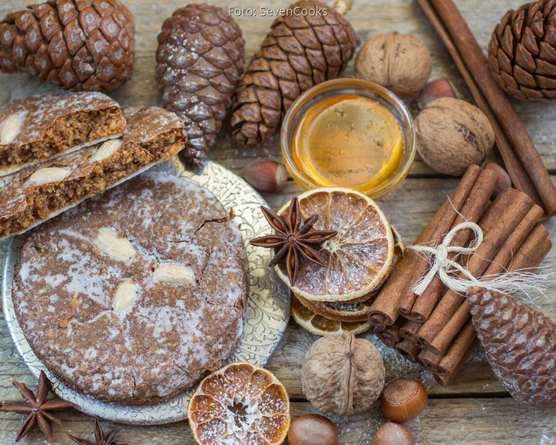 Ofen auf 160 °C vorheizen. Lebkuchen auf ein mit Backpapier belegtes Blech geben und ca. 20 Minuten hellbraun backen.