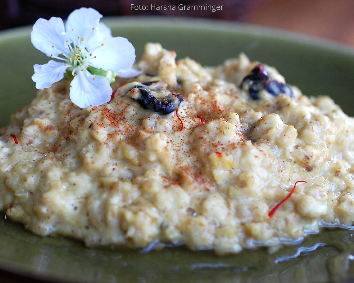veganes Rezept von Harsha Grammingerveganes Energie-Porridge für Vata-Pitta-Kinder wirkt Vata beruhigend ↓ – Pitta beruhigend ↓ – Kapha neutral