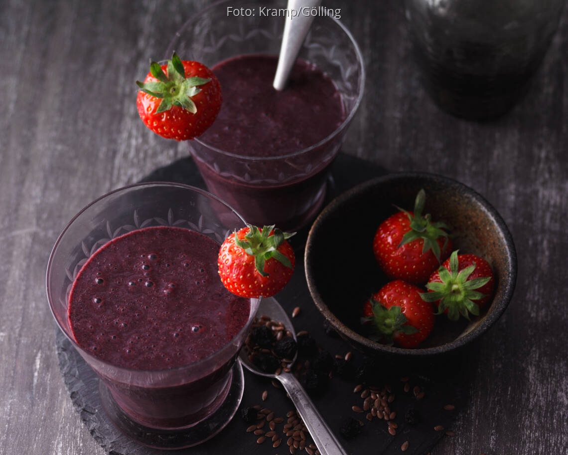 Foto: Kramp/GöllingErdbeer-Smoothie mit Aronia, Feigen, Leinsamen und Gerstengras